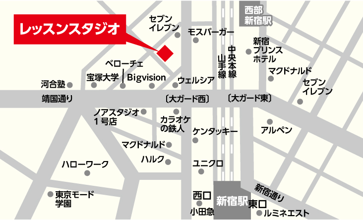 JR新宿駅西口から徒歩約4分。